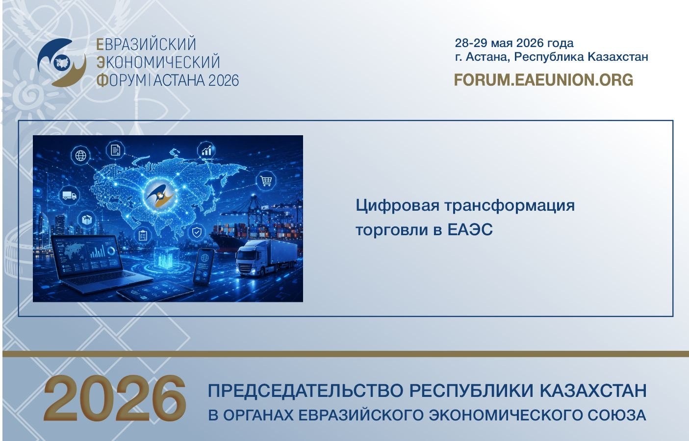 A thematic session on the key directions of digital trade transformation in the EAEU and emerging trends, technologies, and areas of cooperation will take place on May 28 in Astana as part of the 5th Eurasian Economic Forum.